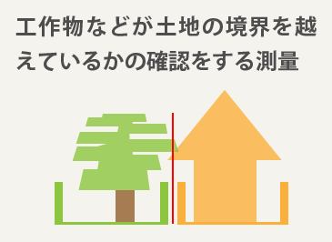 土地の境界確定作業にともない、境界を越えている工作物など有無を確認します。越境が確認された場合は、書面を取り交わします。